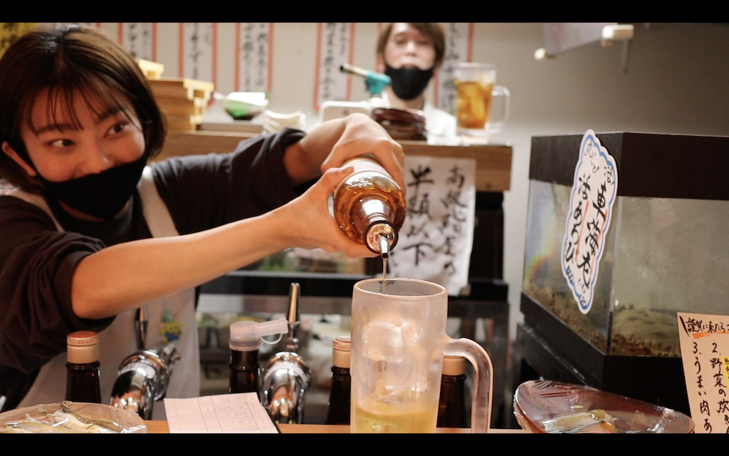 謹賀ハイボール。「ストップ」と言うまでウイスキーが注がれます↓