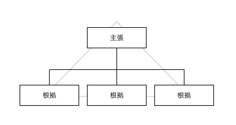 論理的思考について書かれている本などで、必ずといって良いほどに紹介されているのがこの、ピラミッド構造です。