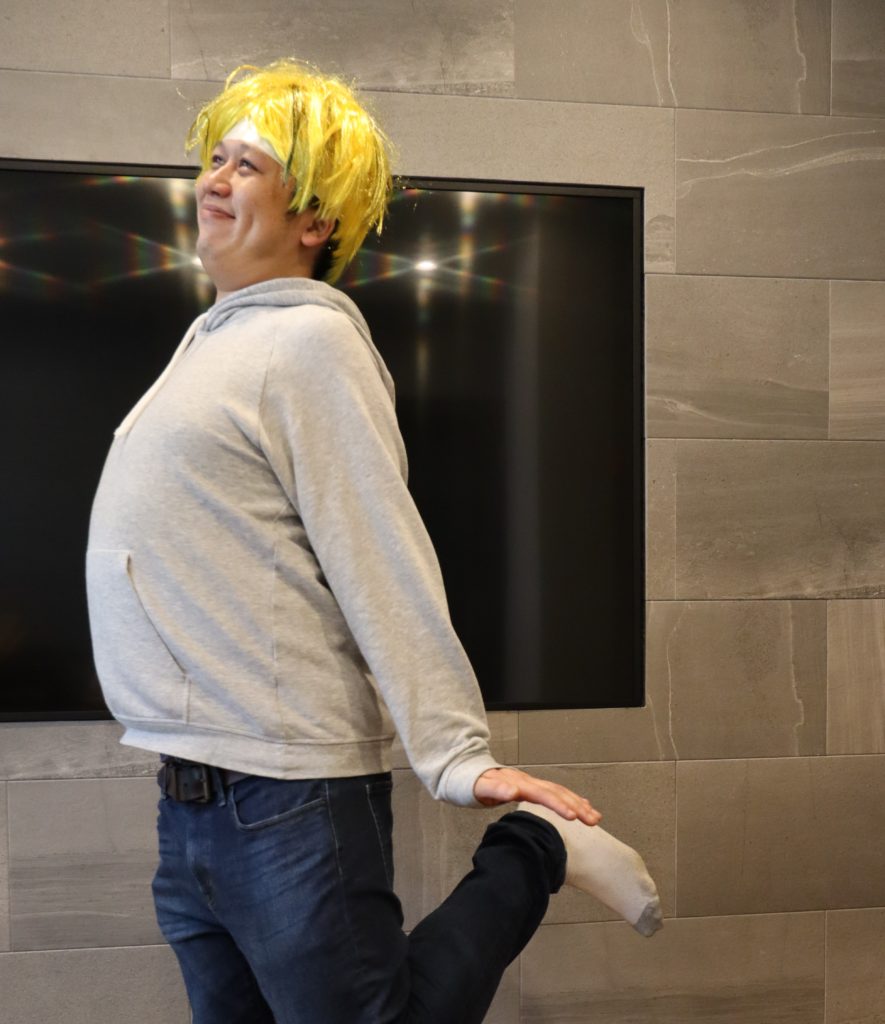 これは、まるでミュージシャンがライブで演奏する時のように自分のプレゼンの際に演じ、客席にだいぶするように演台から降りて観客との距離を詰める・壁をなくす、ということです。