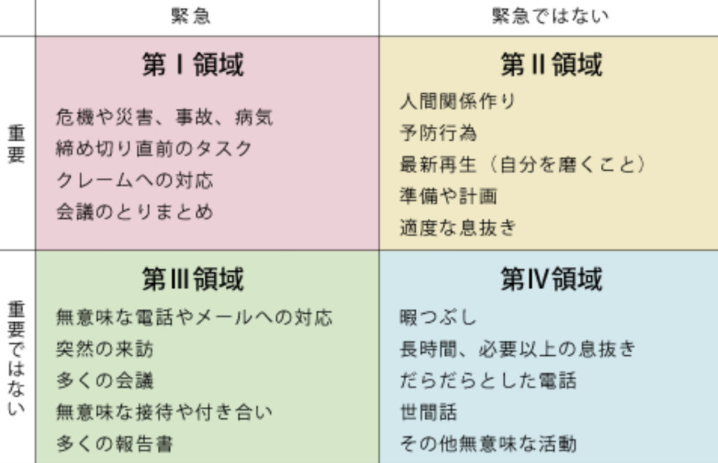 行動を4つの領域に分ける方法が役に立ちます!